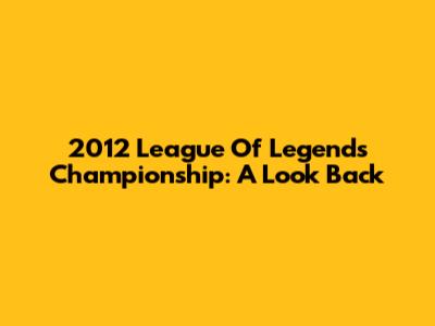 2012 League Of Legends Championship: A Look Back